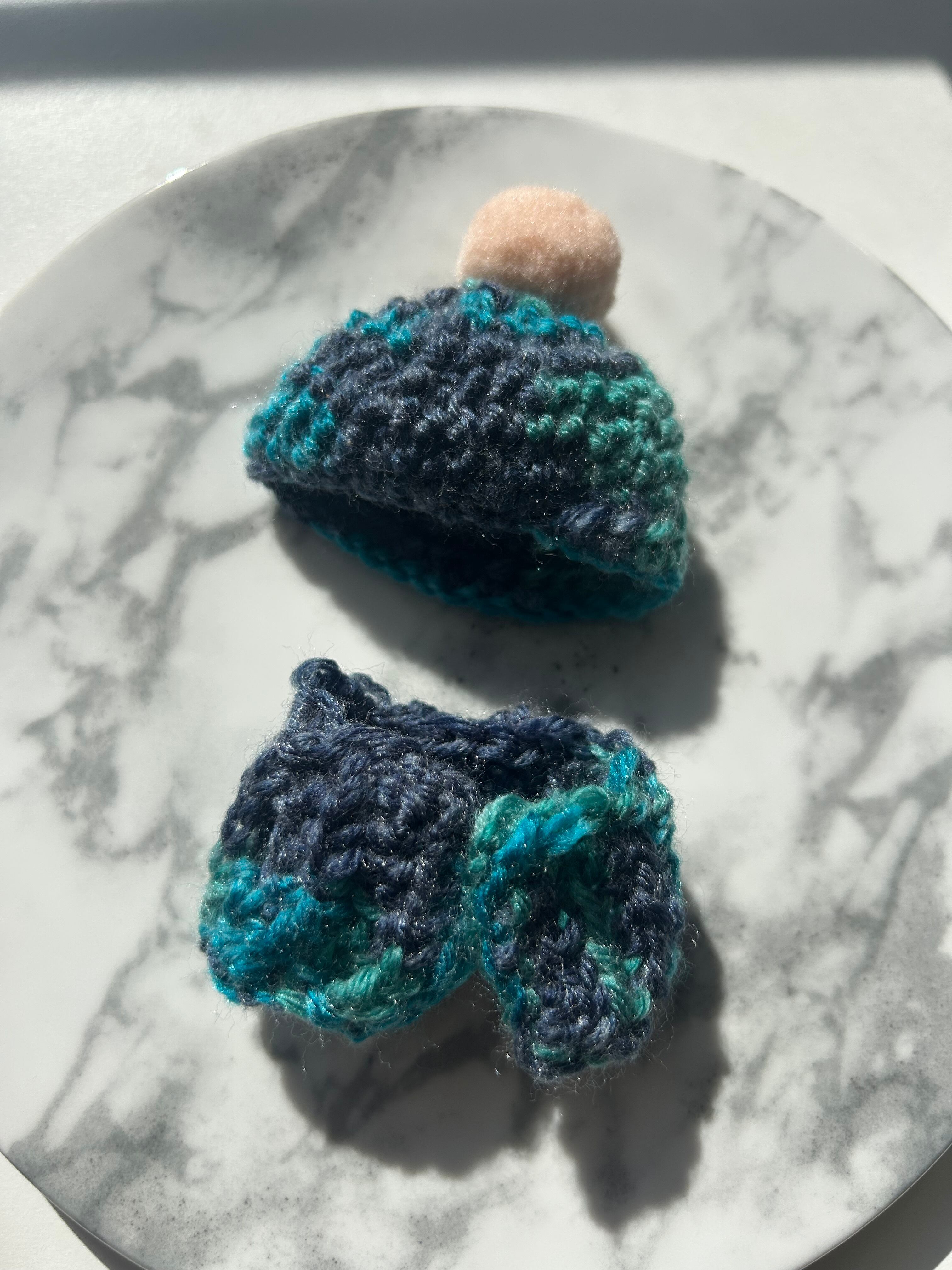 チョッキと、ぽんぽんニット帽のセットです。