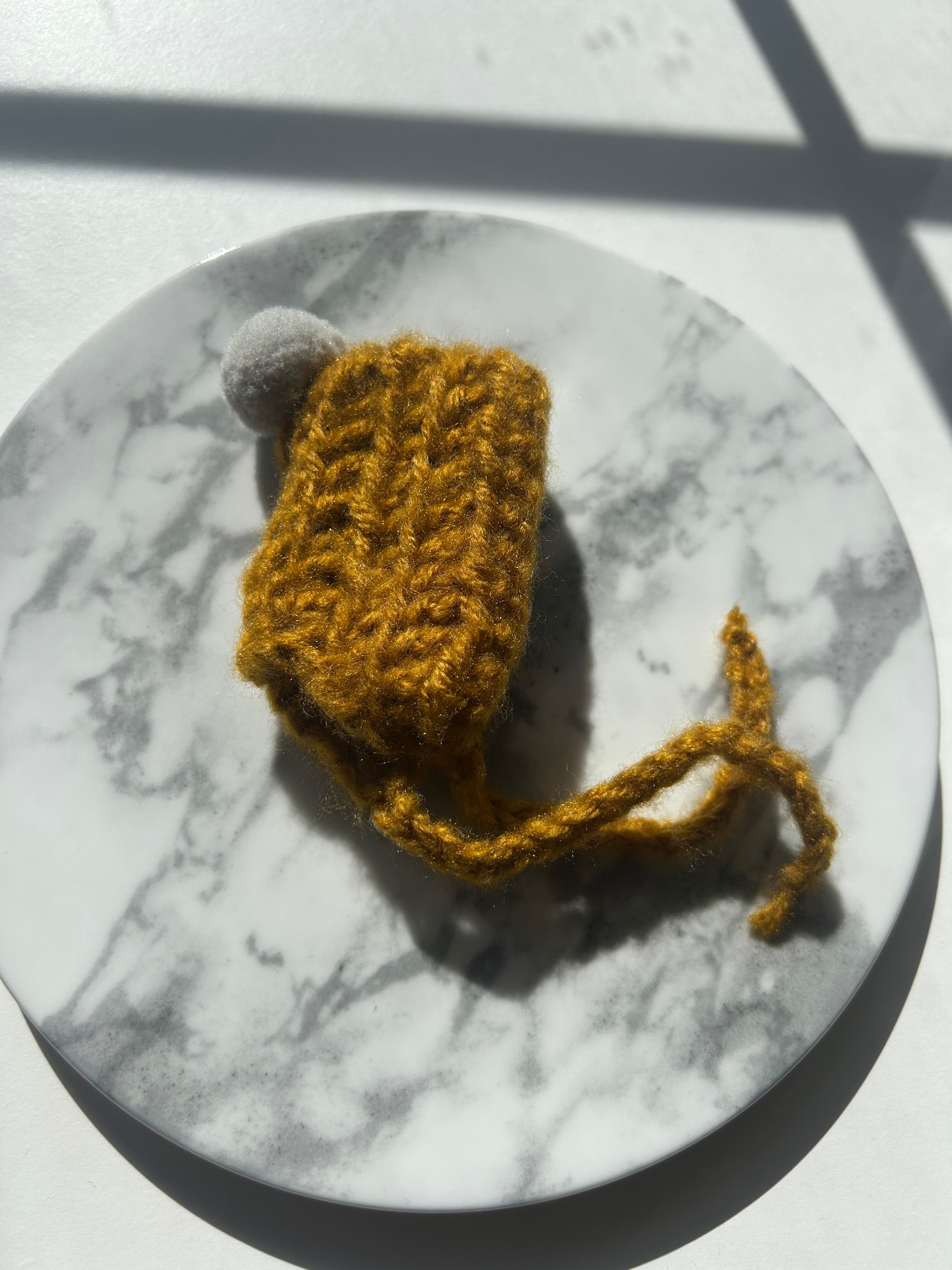 太めの毛糸でボリュームたっぷりに仕上げたニット帽です。